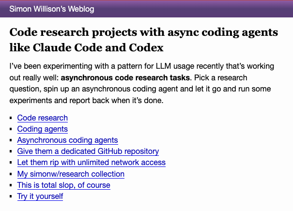 [Fetched and analyzed the article at https://simonwillison.net/2025/Nov/6/async-code-research/]