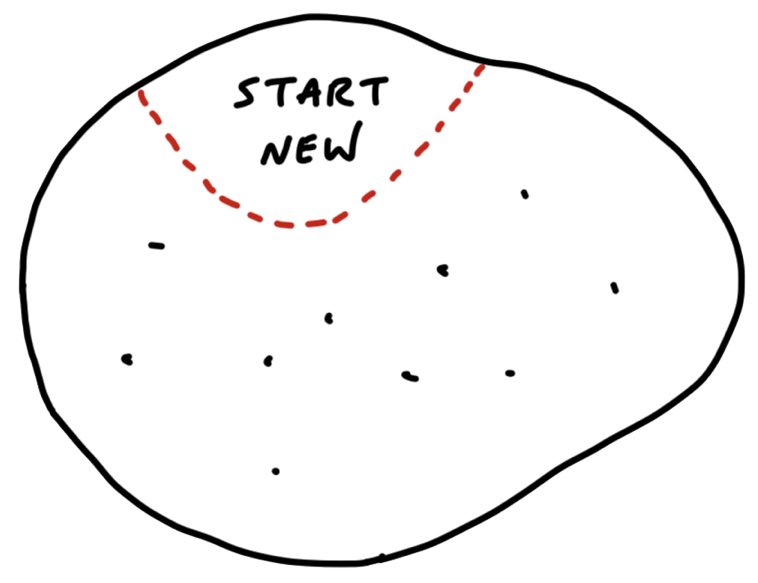 In week 1, we aim to carve out, build, and demo our first slice, beginning a pattern that will continue throughout the cycle. But not just any slice – Shape Up encourages us to “start in the middle” for our first visible slice of work, building something that is central to the project, as opposed to a peripheral like the login screen. The identified slice needs to be small enough to execute in a few days, and if possible, something novel, new to us.