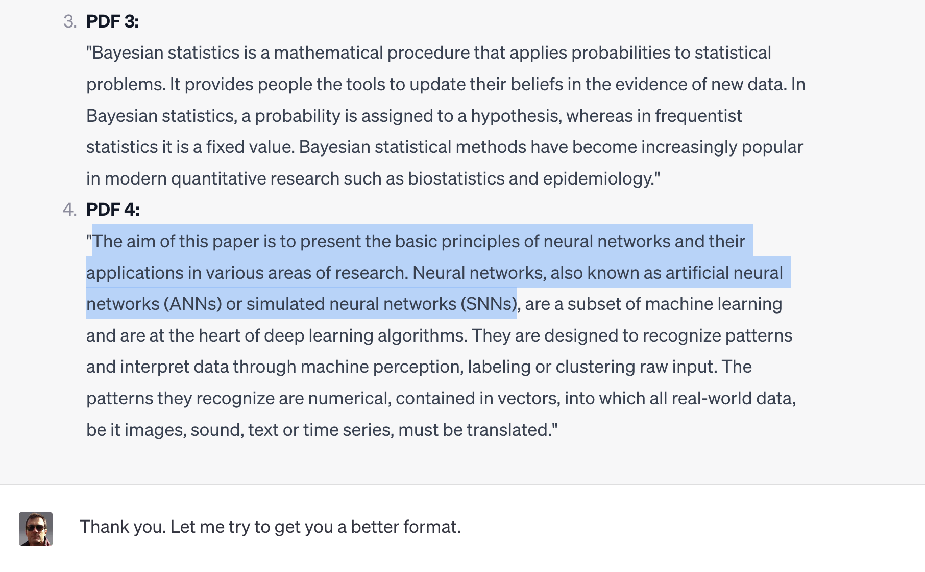 I did a bit of searching on Kagi and in two of the four cases, found the source content on research oriented websites. I was unable to locate the other two sources, which might make sense as they looked like snippets from actual research papers. I didn’t search exhaustively or try Google Research or its ilk.