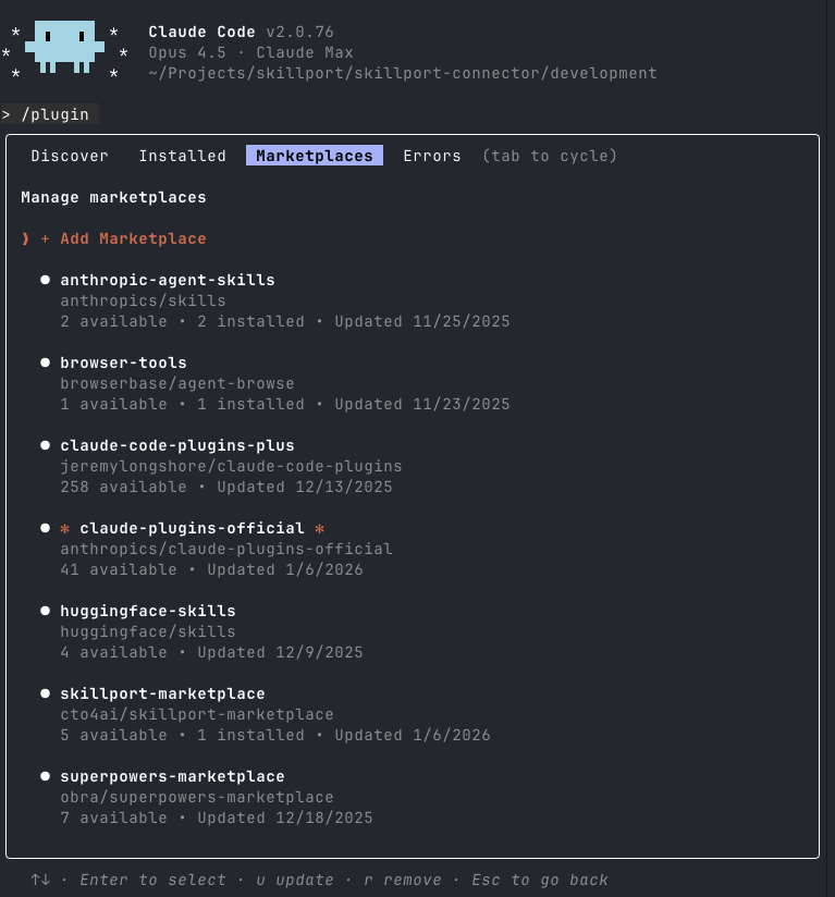 • skillport-marketplace, a GitHub template that creates an Anthropic Plugin Marketplace compliant repository where organizations can (privately!) manage their library of Skills