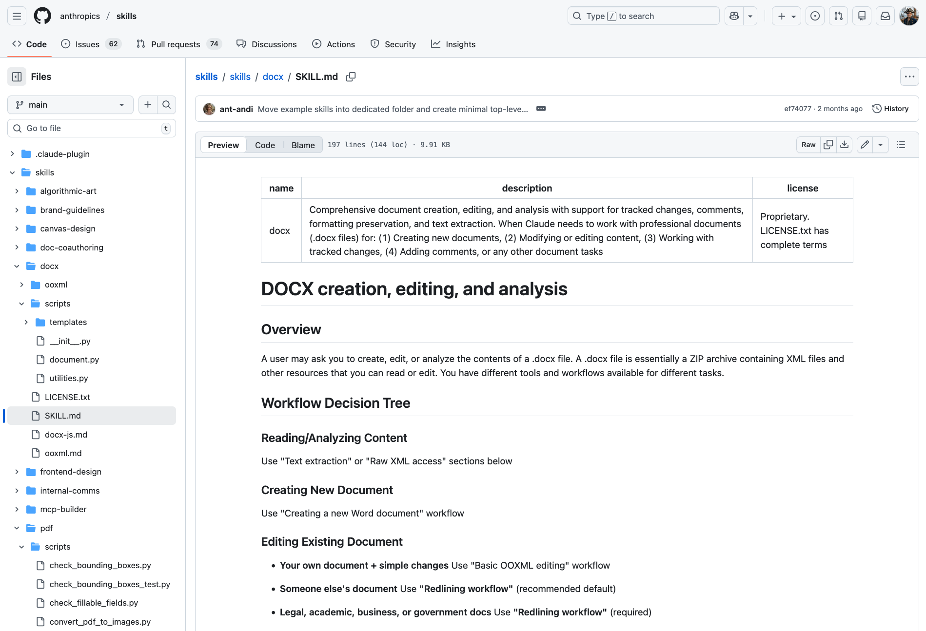On October 16th, Anthropic launched Skills, and in this GitHub repo (committed the day before the launch) you can see the actual Skills that power “create and edit files.” These Skills are powerful, leveraging code execution with Python scripts and even XML schemas.